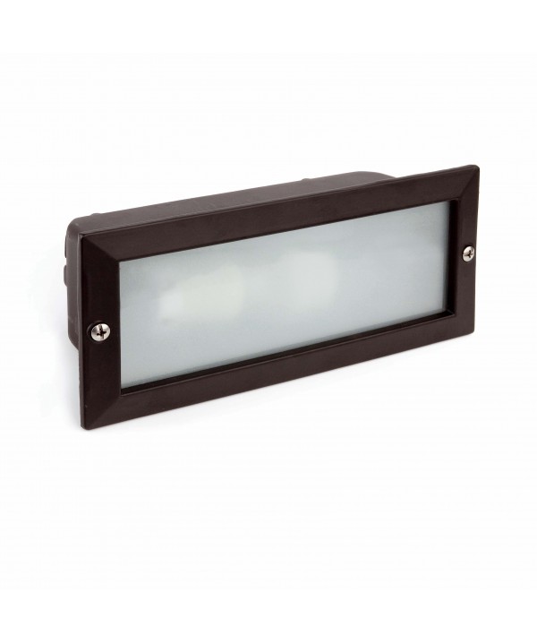 Empotrable de exterior fabricado en metal con difusor de cristal translúcido. Caja en ABS para empotrar, no incluida.