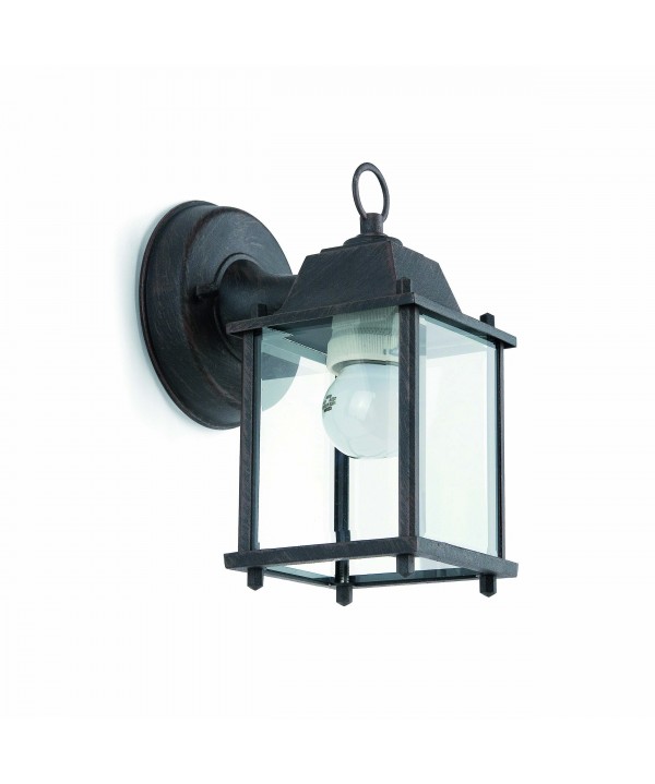 Aplique clásico para terraza y jardín fabricado en metal con difusor de cristal biselado.