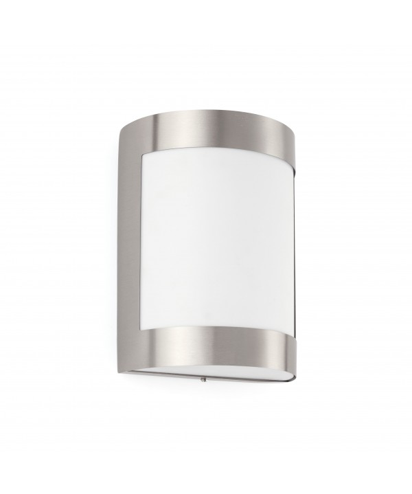 Aplique moderno para terraza y jardín fabricado en acero inoxidable 304 con difusor de policarbonato opal.