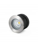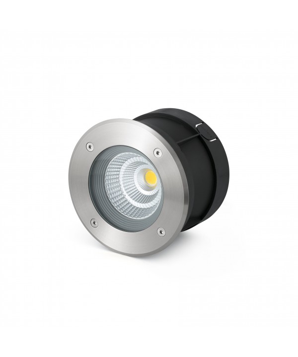 Empotrable LED de suelo con un ángulo de apertura de 60° para iluminar jardines y terrazas fabricado en acero inoxidable 316 y cristal. La fuente de iluminación es COB LED de 12W y luz cálida. Caja de empotrar y driver incluidos. Este empotrable LED es ideal para crear recorridos luminosos y delimitar las zonas de paso en jardines o áreas edificadas.