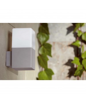 Aplique moderno para terraza y jardín fabricado en aluminio inyectado y difusor en policarbonato opal.