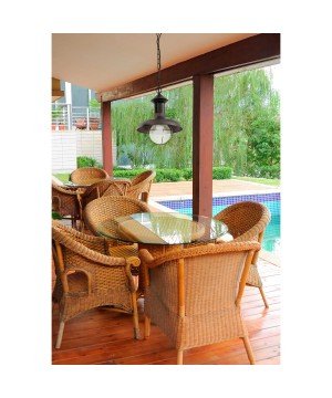Colgante de exterior de estilo clásico fabricado en metal y difusor de cristal burbuja.