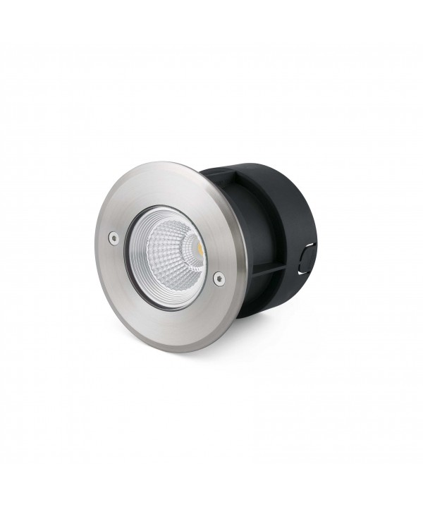 Empotrable LED de suelo con un ángulo de apertura de 60° para iluminar jardines y terrazas fabricado en acero inoxidable 316 y cristal. La fuente de iluminación es COB LED de 3W y luz cálida. Caja de empotrar y driver incluidos. Este empotrable LED es ideal para crear recorridos luminosos y delimitar las zonas de paso en jardines o áreas edificadas.