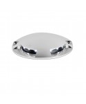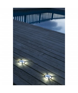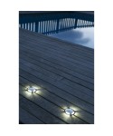 Aplique moderno para terraza y jardín fabricado en aluminio con difusor de cristal transpararente. La fuente de luz son LED 1W 6500K 80Lm. Funciona con un transformador ferromagnético no incluido.