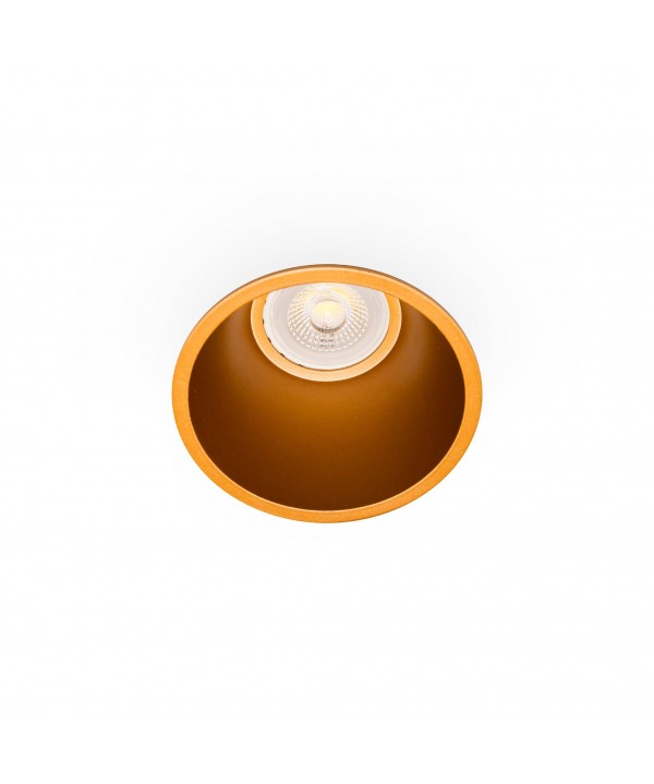 Luz empotrable redonda oro de aluminio inyectado e instalación intuitiva pensado para la iluminacion de proyectos comerciales y de hospitality. La fuente de luz es una luminaria GU10 max 50W no incluida.