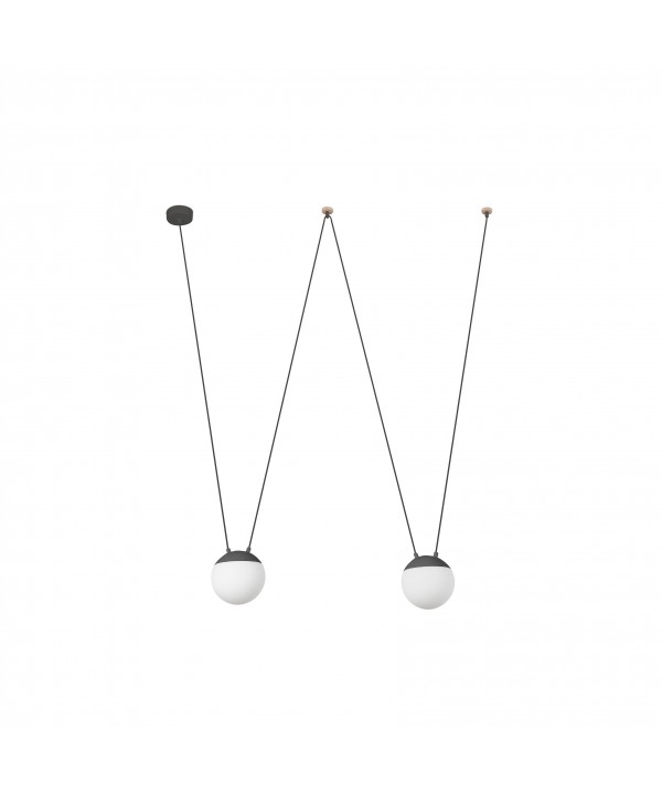 Colgante gris oscuro de dos luces diseñado por Nahtrang con estructura de metal y difusor difusor de policarbonato. El material y la luz que fluye a través del difusor aportan calidez y confort a tu hogar. Este colgante de diseño es versátil y personalizable, gracias al accesorio gancho, podrá colocar la luz donde la necesite. Por sus posibilidades es ideal para la iluminación de espacios contract, pero también para iluminar el hogar. Para más información info@tquatro.es