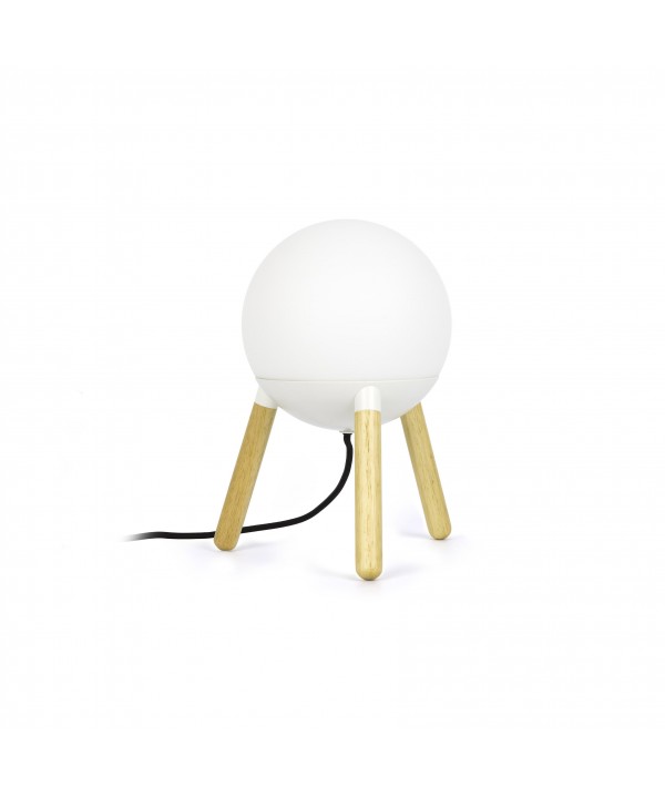 Lámpara de sobremesa blanca diseñada por Nahtrang con estructura de madera y difusor de policarbonato. El material y la luz que fluye a través del difusor aportan calidez y confort a tu hogar.