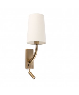 REM es un set de iluminación de diseño creado por Alex & Manel Lluscà. Se caracteriza por un cuerpo estilizado y un estilo clásico pero renovado. El aplique con lector oro mate cuenta con una base minimalista que lo hacen idóneo para la iluminación del dormitorio. Esta familia también está pensada para iluminar espacios contract como, por ejemplo, habitaciones de hotel.