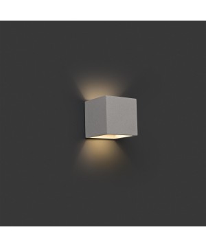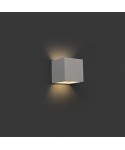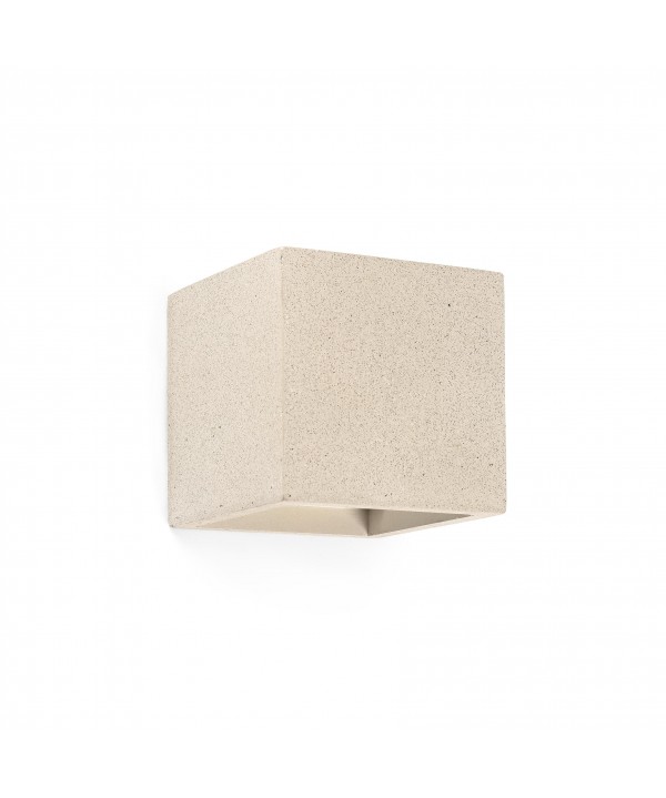 Aplique de pared de forma cuadrado y color beige, fabricado en cemento. Este aplique da luz por arriba y por abajo, hecho que permite iluminar la estancia de forma más homogénea. Lámpara de estilo moderno y líneas depuradas.