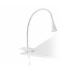 Lámpara de estudio de color blanco con pinza y tecnología LED. La fuente de iluminación es SMD LED 3W 4000K 300Lm y adaptador electrónico incluido. Este flexo le proporcionará calidad en la iluminación para estudiar o para leer.