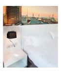 Aplique de estilo moderno para iluminación interior fabricado en metal y pantalla textil. Diseñada por: Estudi Ribaudí.
