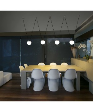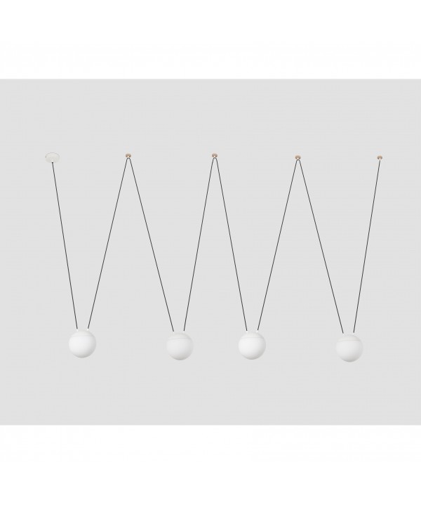 Colgante blanco de cuatro luces diseñado por Nahtrang con estructura de metal y difusor de cristal opal. El material y la luz que fluye a través del difusor aportan calidez y confort a tu hogar. Este colgante de diseño es versátil y personalizable, gracias al accesorio gancho, podrá colocar la luz donde la necesite. Por sus posibilidades es ideal para la iluminación de espacios contract, pero también para iluminar el hogar. Para más información