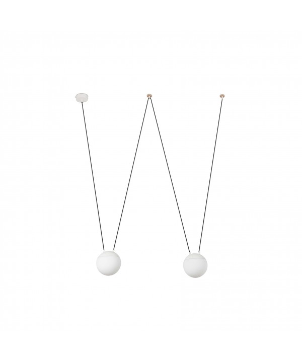 Colgante blanco de dos luces diseñado por Nahtrang con estructura de metal y difusor de cristal opal. El material y la luz que fluye a través del difusor aportan calidez y confort a tu hogar. Este colgante de diseño es versátil y personalizable, gracias al accesorio gancho, podrá colocar la luz donde la necesite. Por sus posibilidades es ideal para la iluminación de espacios contract, pero también para iluminar el hogar. Para más información info@tquatro.es