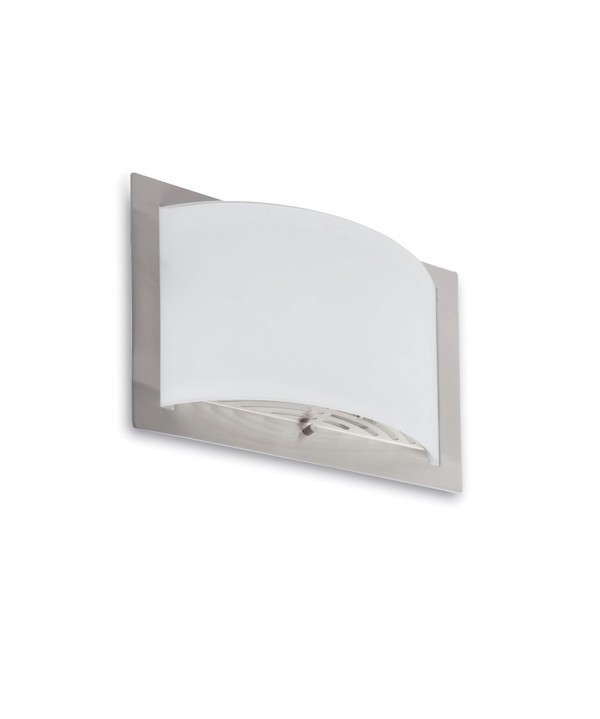 Luminaria aplique de aspecto moderno fabricada en metal y difusor de cristal translúcido.