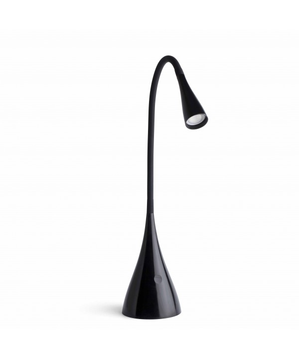 Lámpara de estudio moderna con tecnología LED, fabricada en aluminio, policarbonato, cristal y silicona, acabado en negro. La fuente de iluminación es SMD LED 3W 4000K 300Lm 70° y adaptador electrónico incluido. Este flexo tiene fácil encendido/apagado gracias al sistema Touch Lamp. LENA le proporcionará calidad en la iluminación para estudiar o para leer.