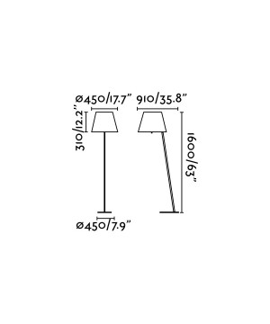 Lámpara pie de salón de estilo moderno para iluminación interior fabricada en acero, pantalla textil y difusor PVC.