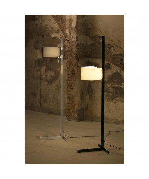 STAND UP by Estudi Ribaudí se caracteriza por la original forma de la pantalla que se integra perfectamente a la estructura minimalista de aluminio de este pie de salón. La pantalla de color negro y la fuente de luz se pueden regular en altura. Su base en forma de T le da estabilidad a la luminaria y le otorga personalidad.