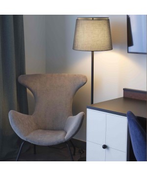 Pantalla textil de la colección diseñada por Isaac Piñeiro. Pensada para la iluminación del hogar, esta pantalla negra es compatible con la estructura de pie de salón de la misma colección.