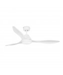 Ventilador de techo blanco con motor DC de líneas modernas y luz. Para habitaciones de 17,6m2. Accionado por mando a distancia, incluido. Dispone de 5 velocidades regulables con un consumo de 4-9-16-23-35 y 86-108-130-145-175 revoluciones por minuto según velocidad. Este ventilador dispone de función inversa y es apto para techo inclinado.