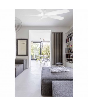Ventilador de techo con luz y motor DC de líneas modernas ideal para estancias de más de 17,6m2. Accionado por mando a distancia, incluido. Dispone de 6 velocidades regulables con un consumo de 7-10-13-17-24-29W y 66-88-104-115-138-146 revoluciones por minuto según velocidad. Este ventilador dispone de función inversa.